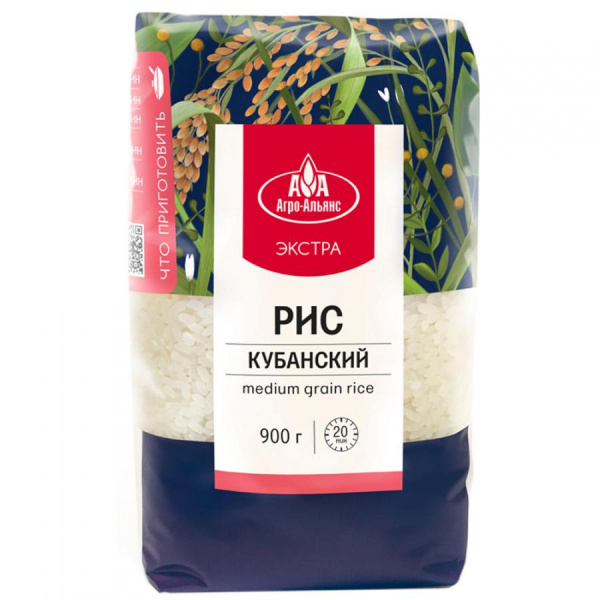 Крупа АГРО-АЛЬЯНС Рис кубанский элитный 900г п/пак/12