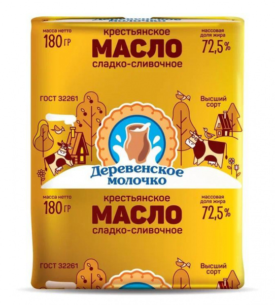 Масло сливочное Деревенское молочко 72,5% ГОСТ 180г фольга/20/БЗМЖ