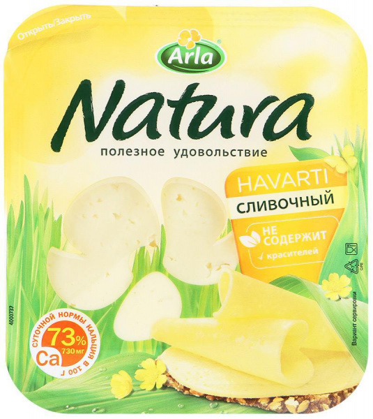 Сыр Натура Сливочный 45% нарезка 150г/10/БЗМЖ