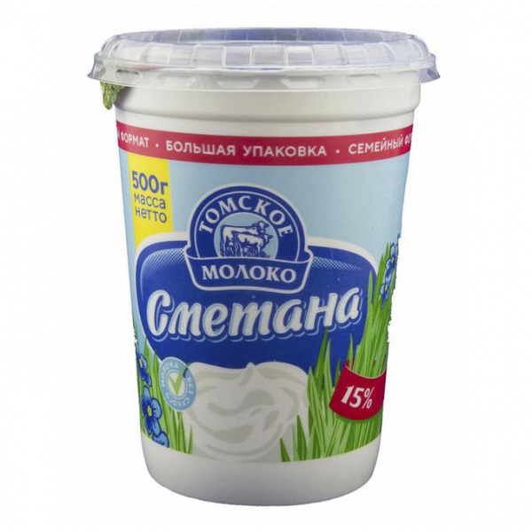 Сметана Томское молоко 15% 500г стакан/12/БЗМЖ
