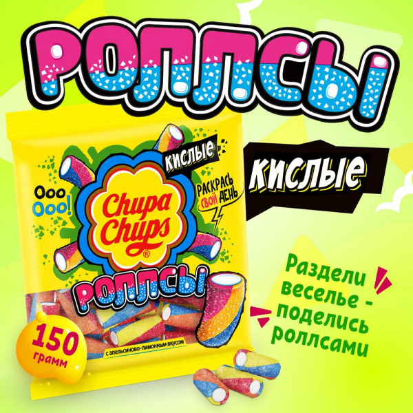 Мармелад жевательный Чупа-Чупс Роллсы мини трубочки 150г/15