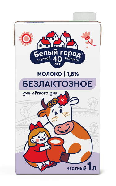 Молоко безлактозное Белый город 1,8% ультрапастеризованное 1л т/п/12/БЗМЖ/ЗОЖ