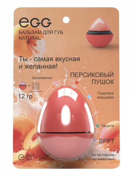 Бальзам д/губ ЭКЗО EGG Персиковый пушок 12г/72/ЗОЖ