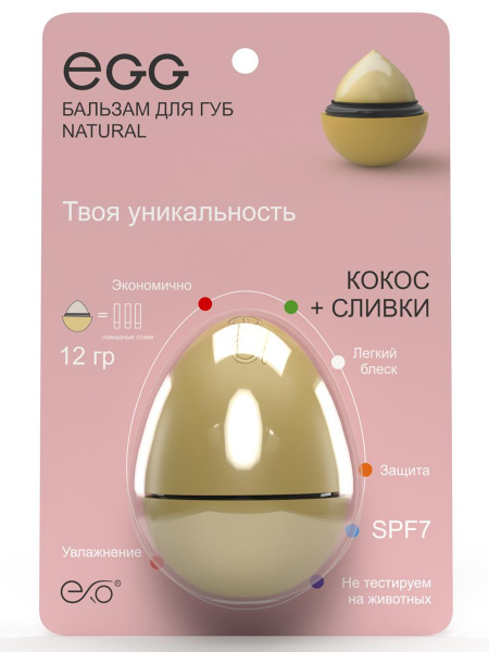Бальзам д/губ ЭКЗО EGG Кокос-сливки 12г/72/ЗОЖ